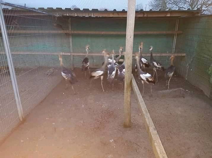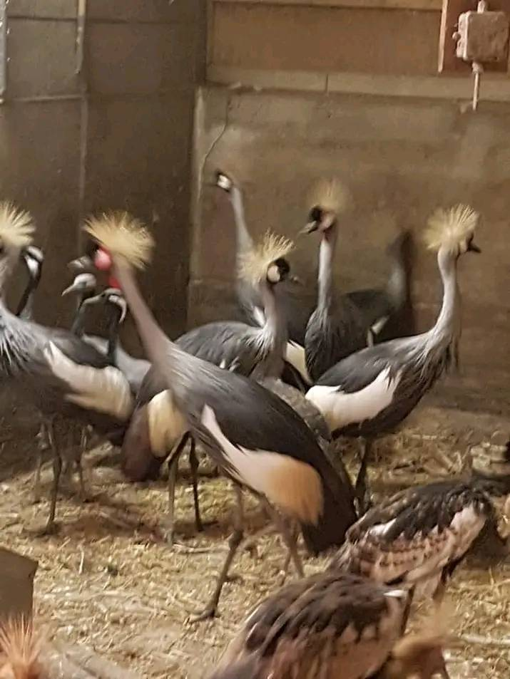 Available Poults/eggs - PRICE LIST Breading pair(2yr+)_____$2000 pair Chicks(5months+ sexed)______$1110pair Fertile eggs__________$35 each __________________________________________________________ East African Crowned Crane Also known as a gray crowned crane, this bird gets its name from the straw-yellow crown on its’ head. They’re omnivores and very, very hungry — they can spend their entire day looking for food. Unlike other cranes, East African crowned cranes nest in trees. As soon as the chicks hatch, they’re able to run. Native to Eastern sub-Saharan Africa and south of South Africa in grasslands near water Primary Diet Plants, worms, insects, lizards, and small mammals Adult Weight 6.6 to 8.8 pounds Lifespan 22 years. Contact: (610) 614-6266 Email: mittyfarms@gmail.com 17 Hollow Rd Telford, Pennsylvania(PA), 18969 www.mittyfarms.com